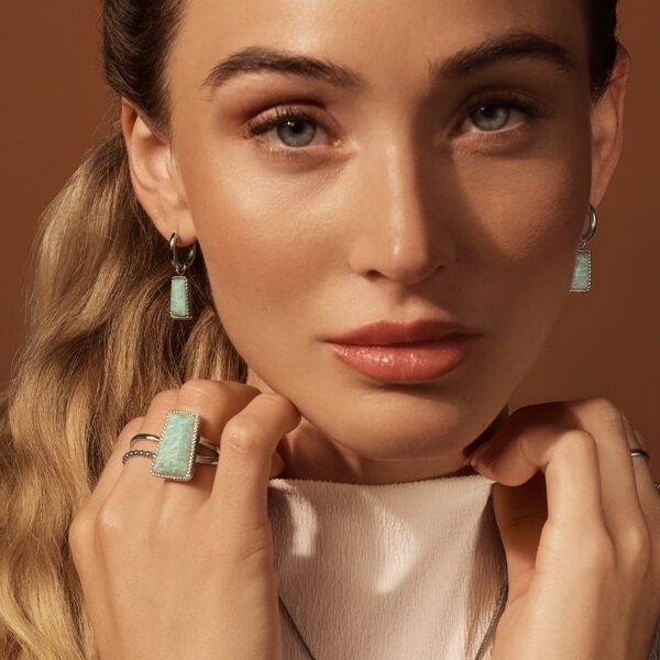 Edelstahl, PVD-Rhodium-Beschichtung, Stein: Amazonit